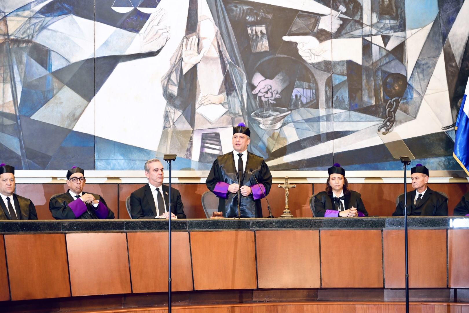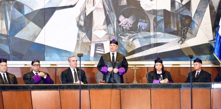 En ocasión de la celebración del Día del Poder Judicial, el Juez Presidente de la Suprema Corte de Justicia, Henry Molina, habló de la necesidad de seguir impulsando la seguridad jurídica y el Estado de Derecho en todos los ámbitos de la sociedad, durante una audiencia solemne realizada en la Sala Augusta de esa alta corte, con la presencia del presidente de la República, licenciado Luis Abinader.