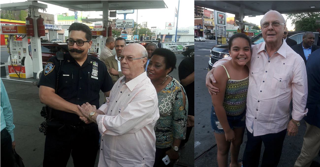 En algunas de sus paradas, caminó cuadras, se detuvo con simpatizantes y admiradores, abrazó a algunos, entre ellos varios niños y niñas y vendedores callejeros y hasta saludó un policía en una estación de gasolina en El Bronx.