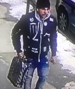 El vídeo muestra al sospechoso con una chaqueta, gorra y pantalones vaqueros azules, cuando caminaba normalmente por la calle con un maletín de rayas. Cualquier persona con información debe comunicarse con Crime Stoppers al (800) 577-TIPS (8477)