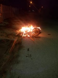La motocicleta quemada es propiedad de un tal “Kukito”, residente en la calle de La Mina, ignorándose hasta ahora la causa por la cual el prófugo tomo tal decisión.