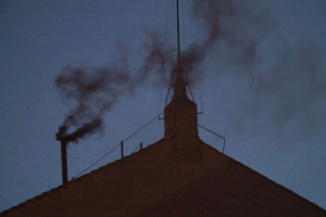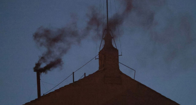 El humo negro se eleva de la chimenea de la Capilla Sixtina, lo que significa que los cardenales no eligieron un nuevo papa en el primer día del cónclave.