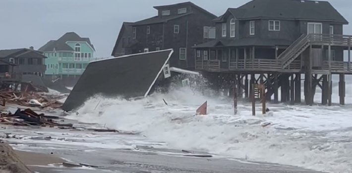 Carolina del Norte, EE.UU. – Varias casas de playa en la localidad de Buxton, en la cadena de islas Outer Banks, colapsaron esta semana debido a las fuertes olas y lluvias provocadas por los huracanes Imelda y Humberto, que azotaron la costa este de Estados Unidos antes de avanzar hacia las Bermudas.