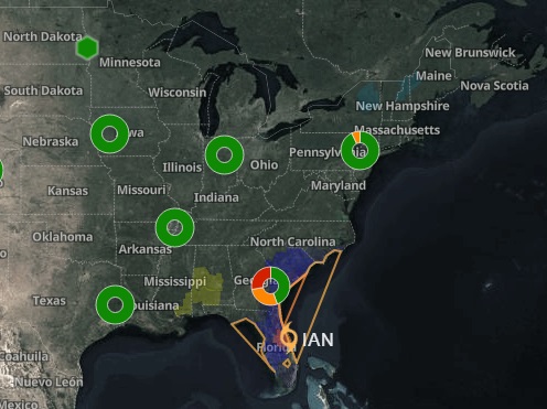 Los vientos con fuerza de tormenta tropical de Ian se extienden hasta 415 millas (655 km) de su centro.