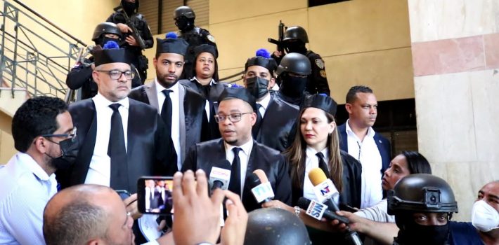 La jueza Yiberty Polanco, de la Oficina Judicial de Servicios de Atención Permanente de Santiago, conoce la solicitud de medidas de coerción presentada por el Ministerio Público, consistente en 18 meses de prisión preventiva, además de la declaración de tramitación compleja para el proceso.