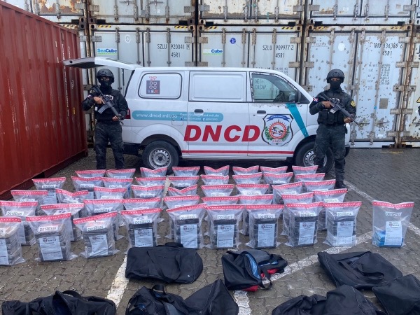 Los agentes de la DNCD, efectivos militares y unidades caninas, perfilaron decenas de contenedores que estaban de tránsito por el país y tras realizar una inspección más rigurosa se encontró en uno de ellos, once bultos conteniendo los 266 paquetes de la sustancia.