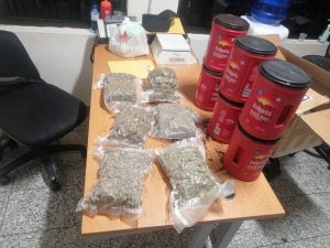 En presencia de un fiscal se procedió abrir la caja, donde se encontraron seis envases de plástico, que simulaban ser de café y en cuyo interior se ocuparon seis paquetes de marihuana, con un peso preliminar de ocho libras.