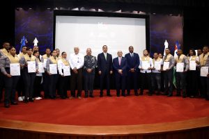 Santo Domingo.- Como parte del proyecto «Destacamentos Conectados», el Instituto Dominicano de las Telecomunicaciones (INDOTEL), en colaboración con el Instituto Nacional de Formación Técnico Profesional (Infotep) y el Ministerio de Interior y Policía (MIC), encabezó la primera fase de la graduación de 147 agentes de la Policía Nacional, quienes fueron formados en el manejo de herramientas tecnológicas para ofrecer un servicio más eficiente en los destacamentos del país.