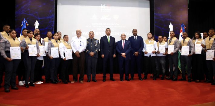 Santo Domingo.- Como parte del proyecto «Destacamentos Conectados», el Instituto Dominicano de las Telecomunicaciones (INDOTEL), en colaboración con el Instituto Nacional de Formación Técnico Profesional (Infotep) y el Ministerio de Interior y Policía (MIC), encabezó la primera fase de la graduación de 147 agentes de la Policía Nacional, quienes fueron formados en el manejo de herramientas tecnológicas para ofrecer un servicio más eficiente en los destacamentos del país.