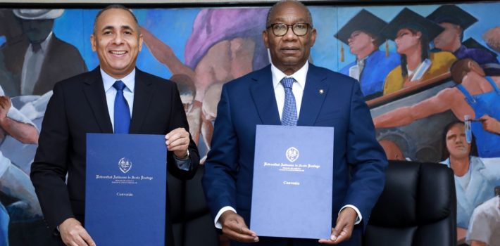 El convenio fue rubricado por el presidente del Consejo Directivo del Indotel, Nelson Arroyo, y el rector de la UASD, Editrudis Beltrán.