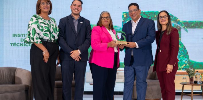 En representación del INFOTEP, la directora de Administración y Finanzas, Vilma Herasme, recibió el galardón y resaltó las acciones institucionales orientadas a reducir, reutilizar y reciclar, con el propósito de disminuir el impacto de los desechos sólidos y fomentar una cultura de cuidado ambiental en la sociedad.