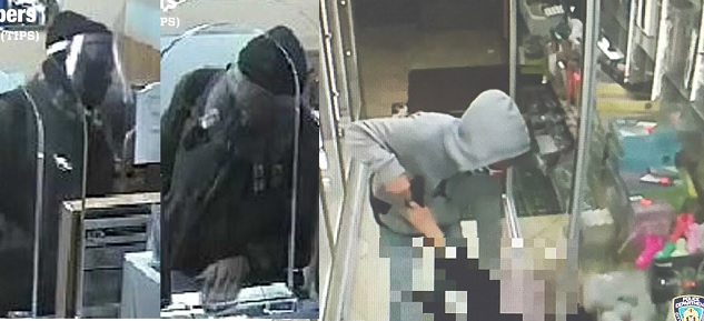 La policía está ofreciendo la recompensa de $2,500 dólares a la persona que ofrezca información sobre dos desconocidos que asaltaron la semana pasada el establecimiento “Smoke Shop Plus”, ubicado en el 93 Featherbed Lane, en El Bronx.