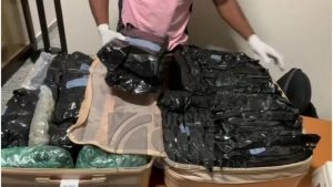 En presencia de un fiscal adjunto se procedió abrir el equipaje, encontrando en las maletas, la cantidad de 67 paquetes del vegetal envueltos en fundas de color negro, transparente y verde.