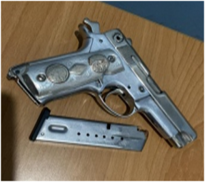 El arma recuperada es la pistola marca Smith & Wesson, calibre 9mm., serie A800400, con dos cápsulas para la misma, la cual, supuestamente fue arrojada en una funda por desconocidos, según declaró la persona investigada.