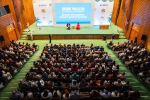 Al introducir el conversatorio, la escritora Minerva del Risco, presidenta de la Fundación René del Risco Bermúdez y directora general de Mar de Palabras, resaltó que el Festival nació “con la convicción de que la literatura y la lectura pueden ser puentes hacia la educación, hacia la sensibilidad y hacia una ciudadanía más plena, más solidaria y con mayor libertad” y agradeció a la escritora española por formar parte de esta iniciativa que busca formar lectores, inspirar e invitar a pensar y a dialogar juntos.