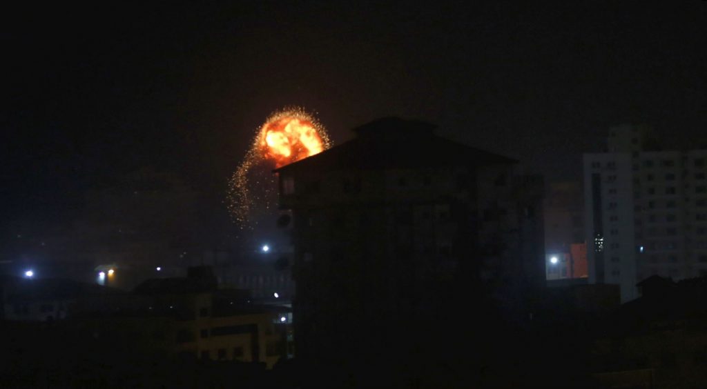 Testigos dijeron que poderosas explosiones provocadas por los ataques aéreos sacudieron edificios en Gaza e iluminaron el cielo en las zonas de los bombardeos.