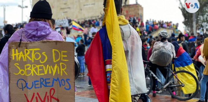 Brandon acudió a una de las tantas manifestaciones que se han desarrollado en Bogotá y le contó a la VOA que tiene reparos frente a “la falta de inversión en educación que hay en el país, son años de endeudamiento. Yo vengo de una de las zonas más afectadas por educación y pobreza, que es Ciudad Bolívar, desde pequeño he visto el abandono del Estado, lo he vivido, lo he sufrido”.