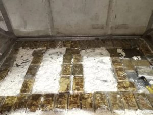 Luego, en presencia de un fiscal se inició el protocolo de verificación, logrando descubrir en el piso del contenedor un doble fondo, donde se ocuparon los 58 paquetes, con un peso total de 59.55 kilogramos de cocaína, según el análisis del INACIF, indicó la DNCD en un comunicado.