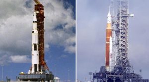 El nuevo cohete es más corto y delgado que los cohetes Saturno V que lanzaron a 24 astronautas del Apolo a la Luna hace medio siglo. Pero es más poderoso, con 8,8 millones de libras (4 millones de kilogramos) de empuje. Se llama cohete Space Launch System, SLS para abreviar, pero se está discutiendo un nombre menos inadecuado, según Nelson.