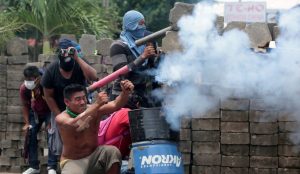 Jóvenes armados con morteros caseros y hondas dispararon proyectiles desde detrás de barricadas de ladrillo en la ciudad sureña de Masaya, mostraron imágenes de video registradas por Reuters.