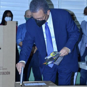 El líder político acudió este domingo a la Escuela República Dominicana, donde ejerció su derecho al voto, acompañado de la candidata vicepresidencial de Fuerza del Pueblo, Sergia Elena Mejía de Seliman, el candidato a senador de la alianza, Vinicio Castillo y decenas de seguidores.