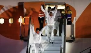 El grupo de hombres, sin esposas, vestidos con ropa deportiva gris y cubrebocas rojos, bajaron en fila del avión de la aerolínea estatal Conviasa, pasadas las 10 de la noche, hora local; y fueron recibidos por el ministro de Interior y Justicia, Diosdado Cabello, quien precisó que todos recibirían atención médica y que revisarían si tienen causas penales en el país.