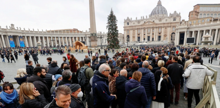 Los fieles presentan sus respetos al papa emérito Benedicto XVI