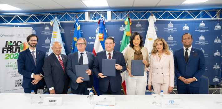 Santo Domingo. – Con la visión de convertir la agroindustria dominicana en un motor estratégico de divisas, empleos y tecnificación, el Ministerio de Industria, Comercio y Mipymes (MICM) encabezó la firma de una alianza estratégica con la Organización de las Naciones Unidas para la Alimentación y la Agricultura (FAO) y la feria internacional Macfrut, orientada a abrir un canal comercial permanente con el mercado italiano, aprovechando el posicionamiento global del mango y el aguacate dominicanos.