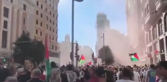 La Policía española utilizó gases lacrimógenos para dispersar a los protestantes, según muestran los videos difundidos en redes sociales.