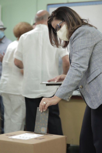 “Vamos a seguir expresándonos con nuestro voto. Todo el mundo a votar, para que nuestra democracia salga fortalecida, demostremos la vocación democrática de nuestro pueblo. Confiamos en que los resultados reflejarán el deseo del pueblo dominicano”, afirmó Margarita Cedeńo de Fernández.