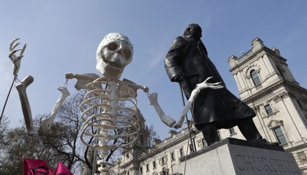 Los manifestantes bloquearon el lunes lugares como el puente de Waterloo sobre el Támesis, la bulliciosa intersección de Oxford Circus y la Plaza del Parlamento, además de realizar actos vandálicos en la sede de la petrolera Shell.