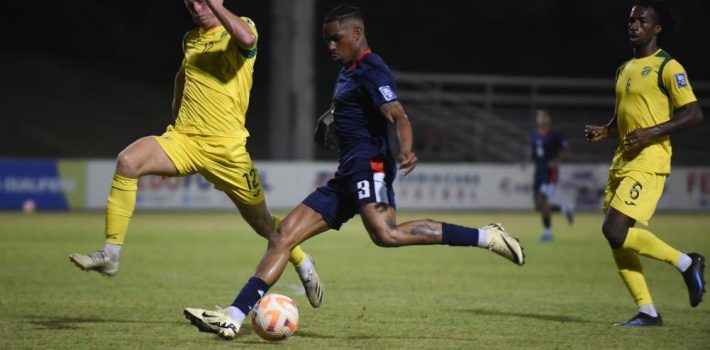 Los isleños hicieron poco en el primer tiempo, y tuvieron dos tiros a puerta entre el minuto 30 y el 33, ambos atajados por el portero dominicano Miguel Lloyd.