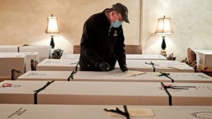 Con la ayuda del personal de la funeraria colocaron suavemente las cajas en la parte trasera de uno de los vehículos, el primer paso en un largo viaje a un crematorio fuera del estado de Nueva York.