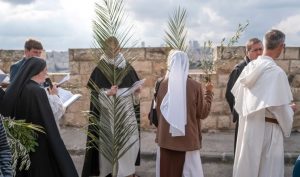 Los peregrinos ondearon palmos y ramas en el aire, objetos que fueron colocados a los pies de Jesús cuando las multitudes lo aclamaban a su entrada en Jerusalén, según la Biblia. Anteriormente hubo también una ceremonia en la Iglesia del Santo Sepulcro, venerado como el lugar de la crucifixión de Jesús.