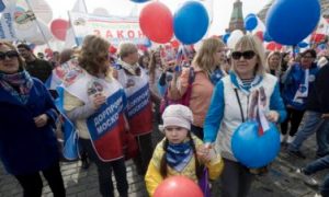 En los últimos años, el desfile se ha convertido en una orquestada muestra de poder de las autoridades rusas y del partido gobernante, Rusia Unidas, donde los participantes se niegan a criticar las políticas del gobierno.