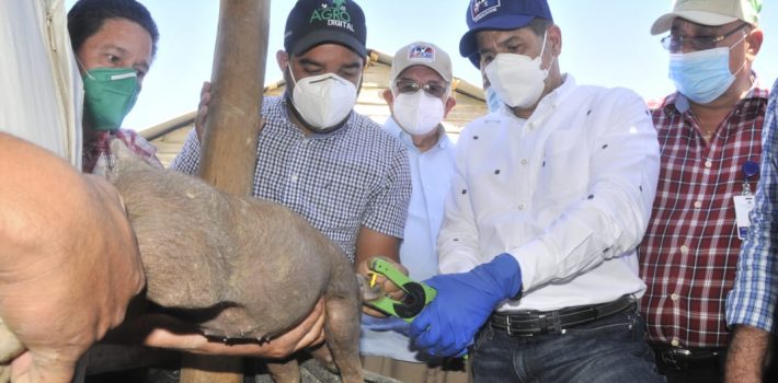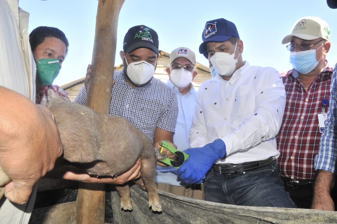 SANTIAGO RODRÍGUEZ,- El ministro de Agricultura, Limber Cruz, aplicó las primeras dosis a dos cerditos bebés para dejar iniciada la Primera Jornada Nacional de Vacunación contra la Peste Porcina Clásica (PPC).