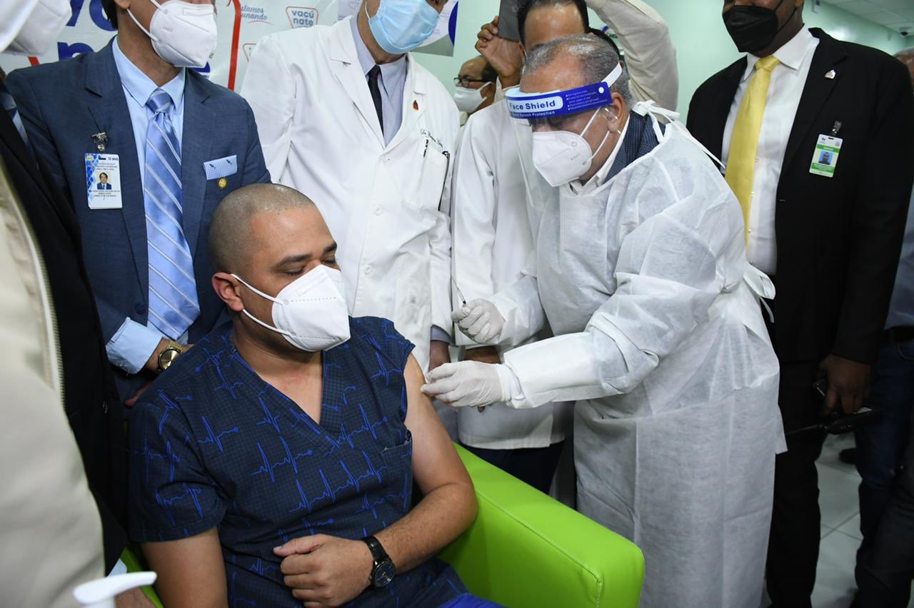 En el hospital Regional Universitario José María Cabral y Báez, de Santiago, el ministro dio apertura oficial a la jornada de vacunación contra la COVID19 en el Cibao. Los primeros vacunados fueron los doctores Juana Sarita y Tomás Almonte y el auxiliar de enfermería Pavel Ceara.