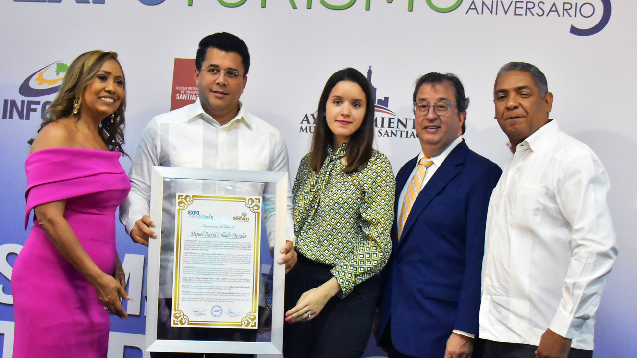 Collado, que asistió a la apertura del evento en compañía de su equipo de trabajo del MITUR y del Gabinete de Turismo, recibió un reconocimiento de parte de Expoturismo y del Clúster Santiago Destino Turístico por su eficiente gestión al frente del Ministerio de Turismo.