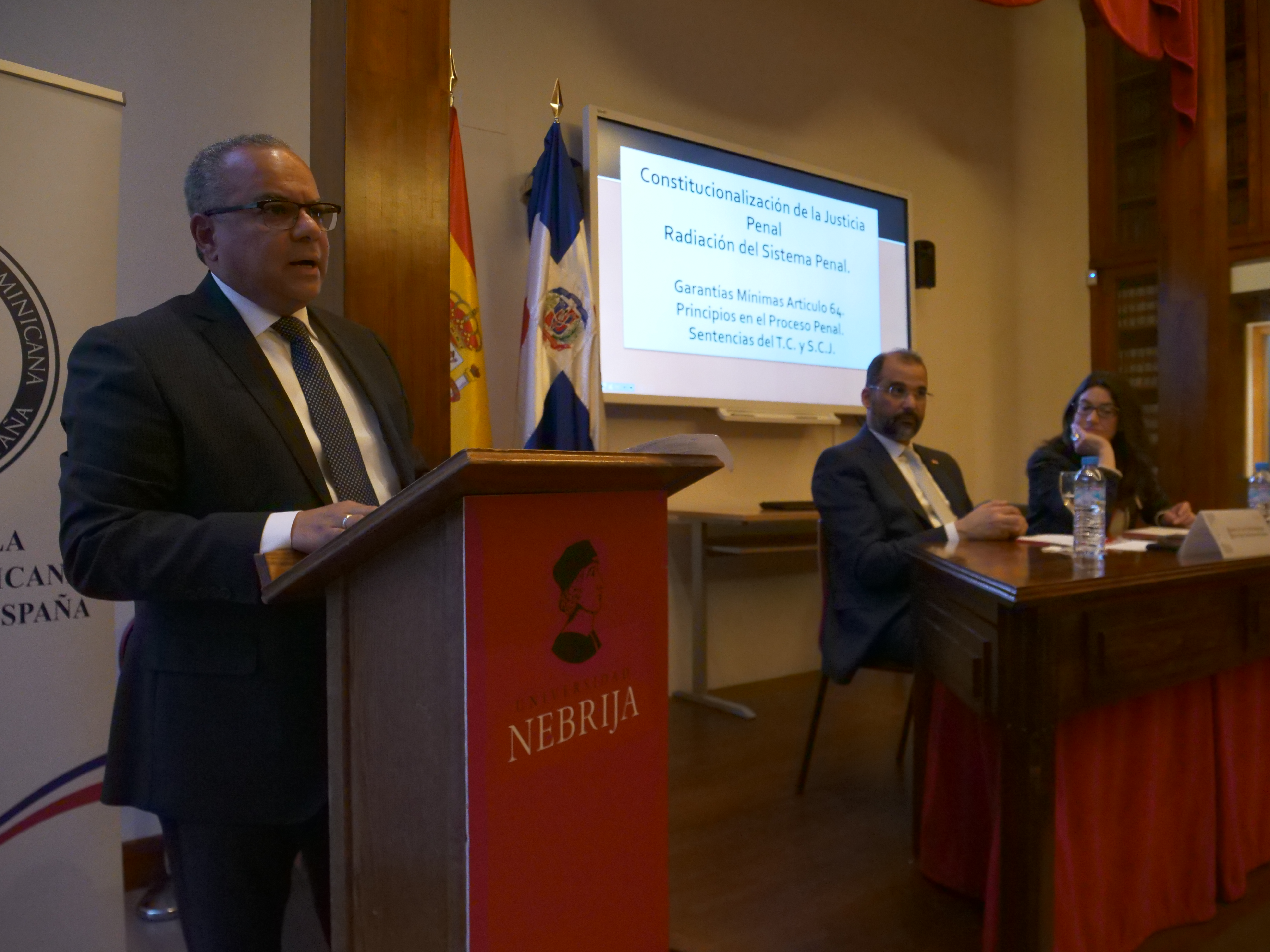 Al impartir la conferencia “La Constitucionalización del Sistema Penal Dominicano”, en la Universidad Nebrija en Madrid, en el marco de las actividades del Mes de la Dominicanidad que realiza la Embajada Dominicana en el Reino de España, el también decano de la facultad de Derecho de la Universidad de Apec, destacó la necesidad de conocer a profundidad sobre la peligrosa relación que existe entre la indiscutible facultad sancionadora o el derecho a penar y sancionar que posee el Estado, y el surgimiento de fuertes garantías penales y procesales, que trae consigo el proceso de constitucionalización de la justicia penal.