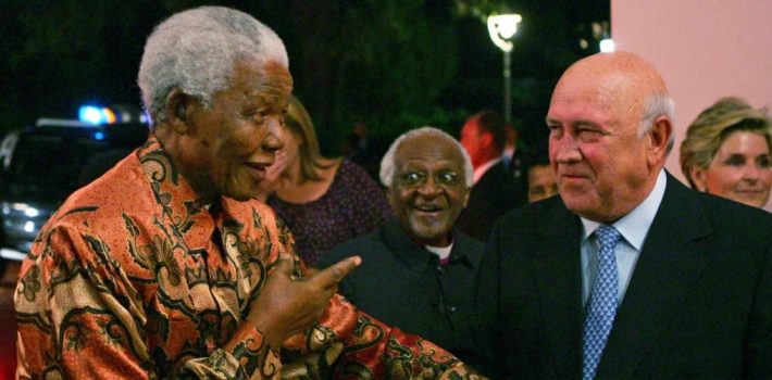 De Klerk, de 85 años, encabezó el gobierno de la minoría blanca de Sudáfrica hasta 1994, cuando el partido del Congreso Nacional Africano de Nelson Mandela llegó al poder.