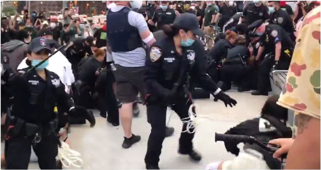 NUEVA YORK,- Mujeres policías enviadas a sofocar las protestas en Brooklyn, fueron grabadas repartiendo macanazos (bastonazos) a diestra y siniestra contra los manifestantes contra el homicidio por asfixia del afroamericano George Floyd a mano del policía de Indianápolis, Derek Chauvin, además de ellas, mantener fuertes jaleos con participantes en las manifestaciones, una de ellas celebradas en el sector Cadman Yard en Brooklyn el miércoles en la noche.