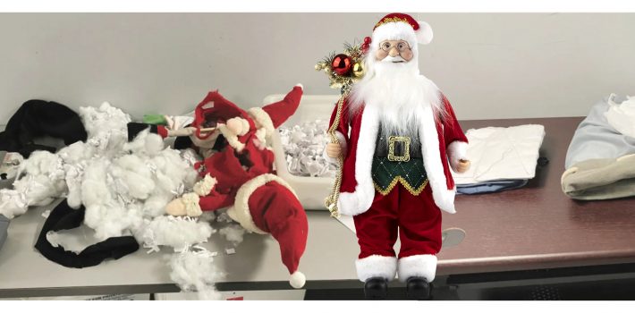 La CBP envió a los medios locales fotografías de los muñecos de Santa Claus después de ser destripados por los federales en el aeropuerto.