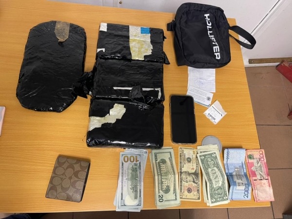 Posteriormente y en presencia de un fiscal, se procedió a inspeccionar su equipaje, encontrando en su interior una mochila de color azul con cuatro paquetes de una sustancia, que se presume es cocaína.