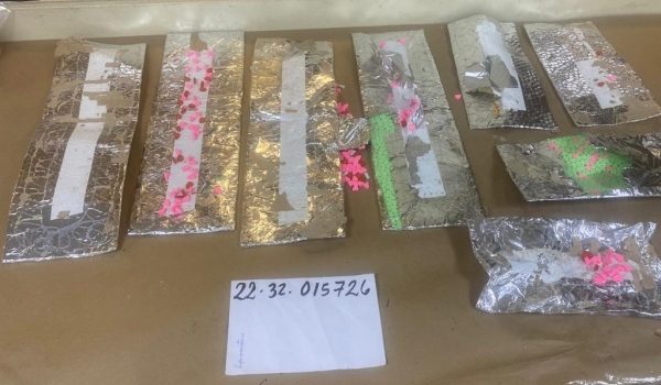 Posteriormente, en presencia de un fiscal adjunto, se procedió a hacer una revisión más exhaustiva, ocupando ocho láminas rellenas de las pastillas, incrustadas con un pegamento especial en las tapas inferiores y superiores de la caja.