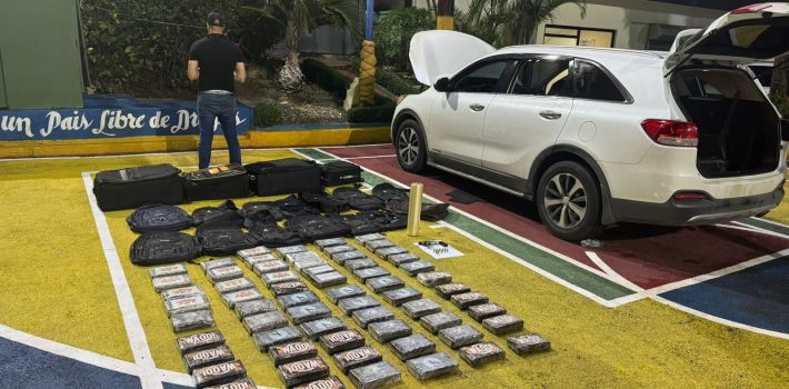Al intervenir el vehículo en la Calle Boulevard del Mar, próximo a la terminal de Punta Cana, se decomisó una maleta que contenía dos mochilas con 29 paquetes de presunta cocaína. Además, se ocuparon un teléfono celular, una placa de vehículo, un pasaporte y otros documentos de interés para la investigación.