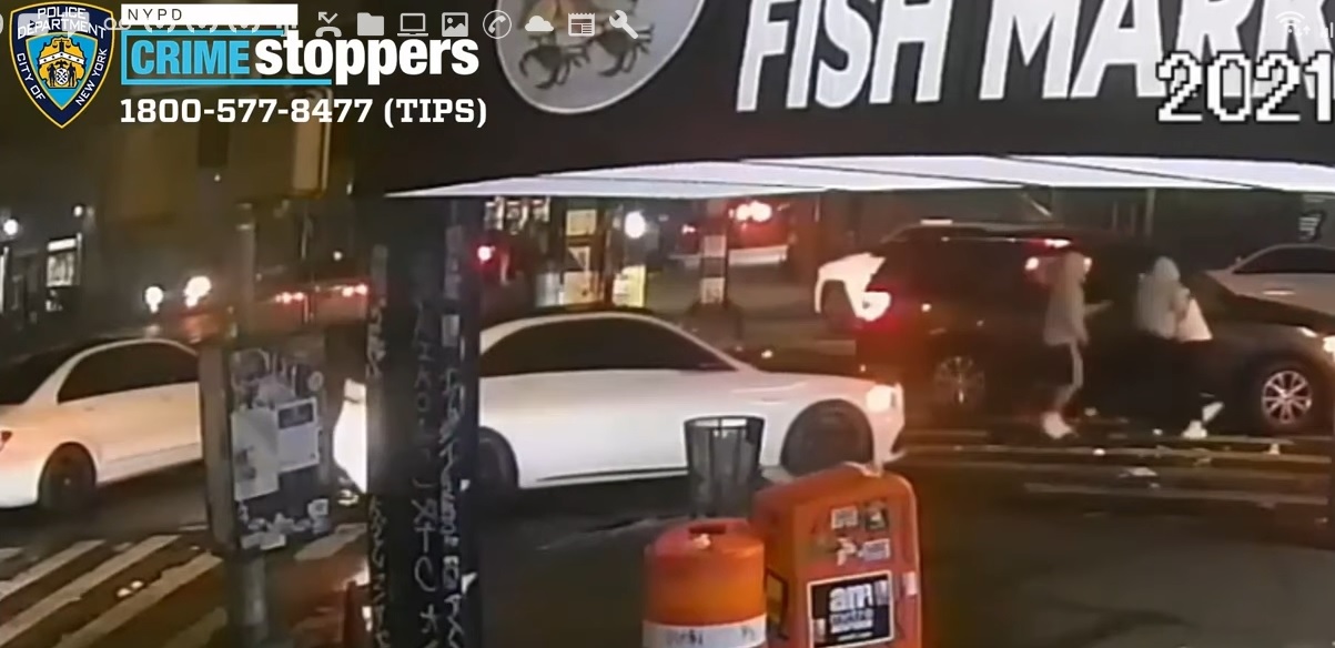 Luego, los ladrones se suben a un sedán Mercedes-Benz negro y huyen por el puente de la calle 207 hacia El Bronx.