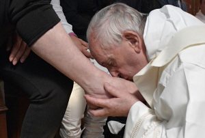 Ante ellos Francisco explicó que el lavado de pies no es «folclore» sino una tarea que los esclavos realizaban antiguamente cuando llegaba alguien a casa para limpiar el polvo de sus zapatos, pero que Jesús lo hizo con la voluntad de «sembrar amor».