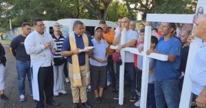 Santiago.– Activistas sociales y dirigentes comunitarios de La Finca de Áciba, en Hato del Yaque, acompañaron este lunes a tres peregrinos que emprendieron una caminata desde Santiago hasta el Palacio Nacional con el objetivo de exigir al gobierno la ejecución de obras que, según afirman, continúan pendientes en su comunidad.