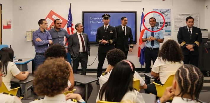 NUEVA YORK.- Un grupo de pilotos dominicanos visitó el programa de aviación de la Escuela Secundaria Gregorio Luperón para Ciencia y Matemáticas, ubicada en el sector de Washington Heights con el objetivo de inspirar a los jóvenes estudiantes -en su mayoría dominicanos recién llegados a EE.UU.- a seguir sus sueños de convertirse en pilotos profesionales.