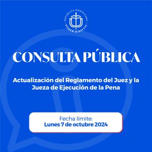 El proceso de consultas públicas inicia este lunes 2 de septiembre y concluye el día 07 de octubre de 2024. Las opiniones sobre la propuesta serán recibidas a la dirección electrónica: consultapublicascj@poderjudicial.gob.do.
