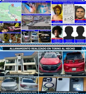 Como resultado de las investigaciones técnico-forenses realizadas por la Dirección Central de Investigación (DICRIM), fueron detenidos Arisleyda Valdez Moreno, alias “La Loca”, y Leudi Rafael Almonte Núñez, alias “El Vegano”.